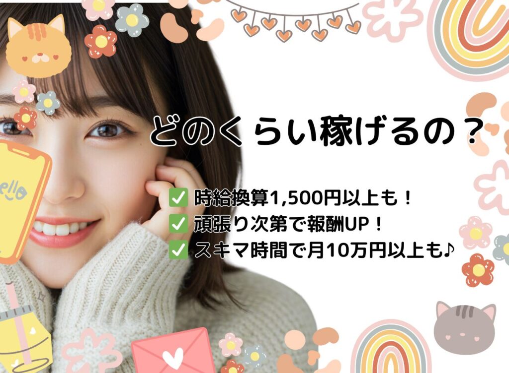 A. 人によるけど、スキマ時間で月5〜10万円、本気で頑張れば月30万円以上の子もいるよ😳✨